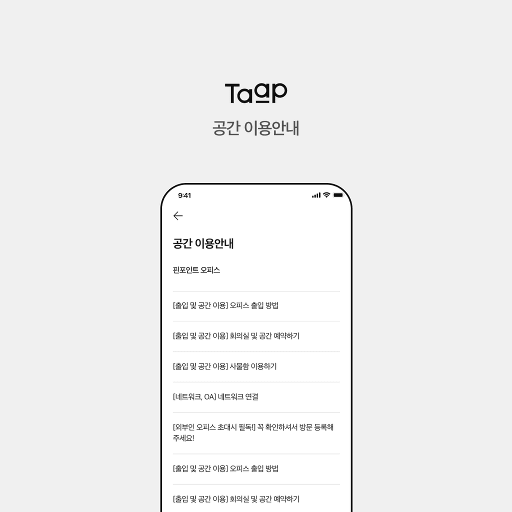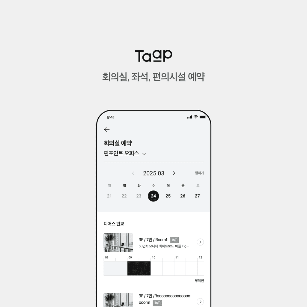 회의실, 좌석, 편의시설까지 다양한 타입의 공간들을 편리하게 통합 예약