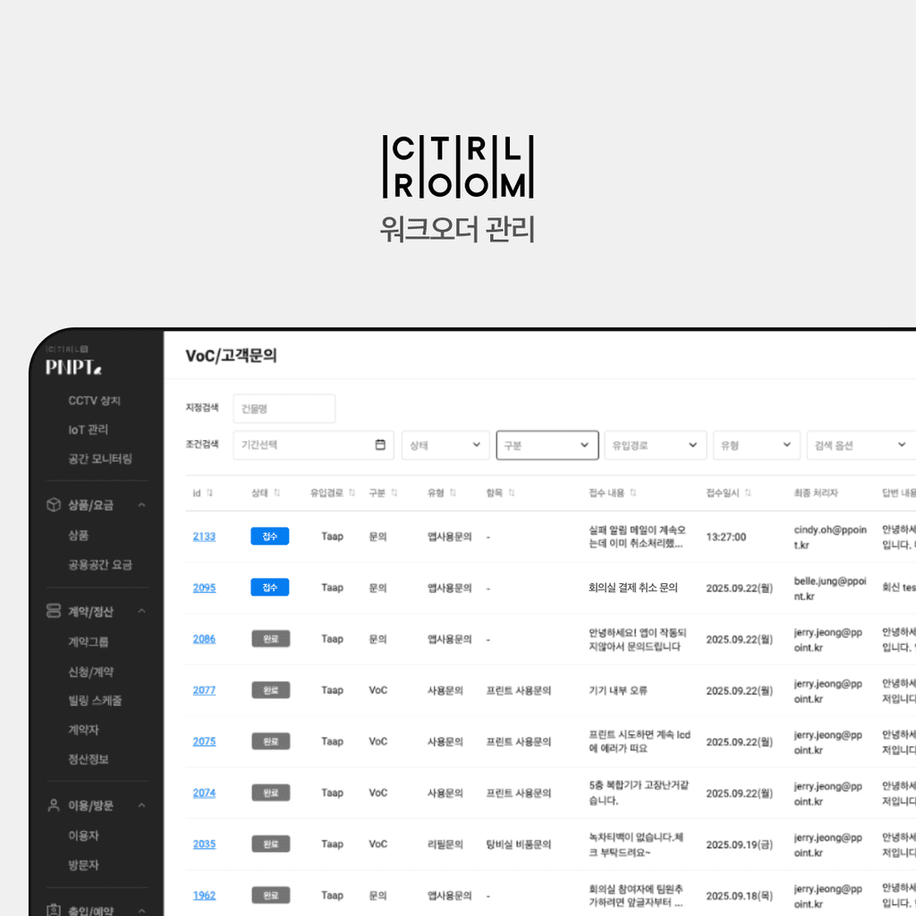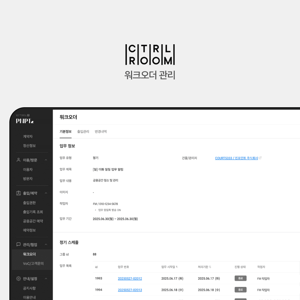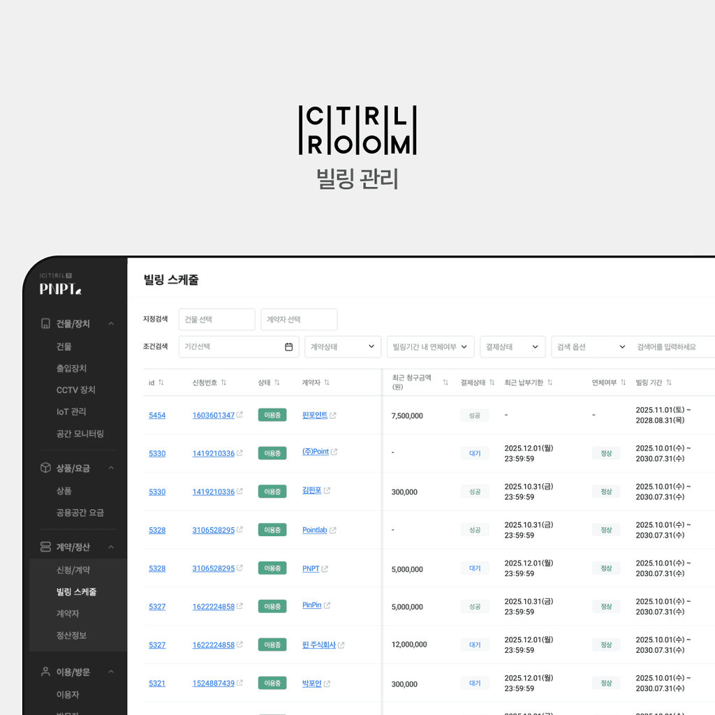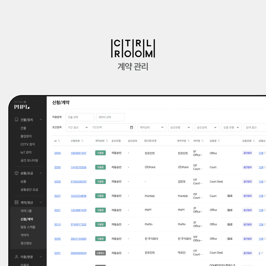 플랫폼에 등록된 계약정보 기반으로 이용자, 방문자 출입권한 자동 관리 및 실시간 통제