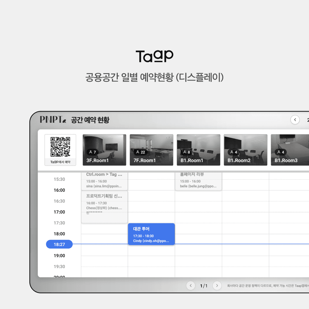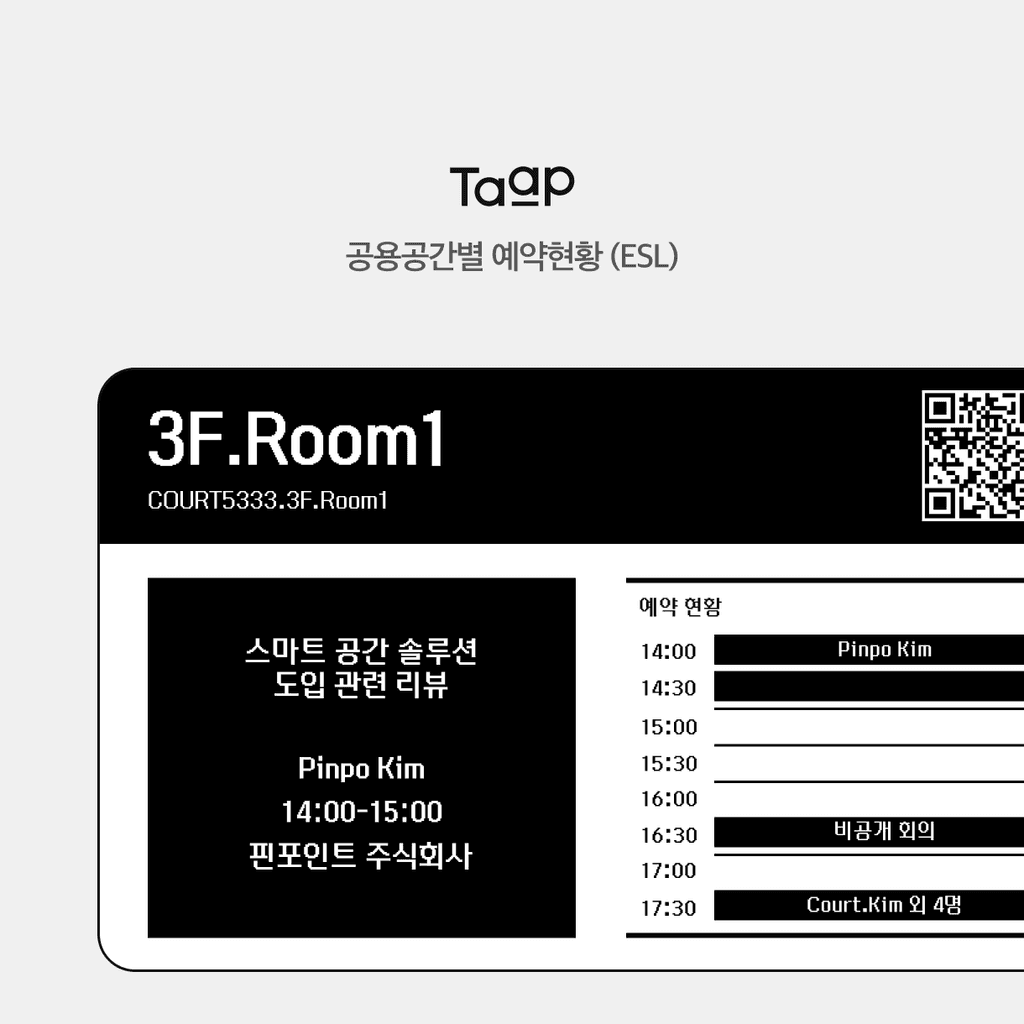 캘린더 연동, 예약현황 디스플레이(개별 공간용 ESL, 전체 공간 게시용) 연동
